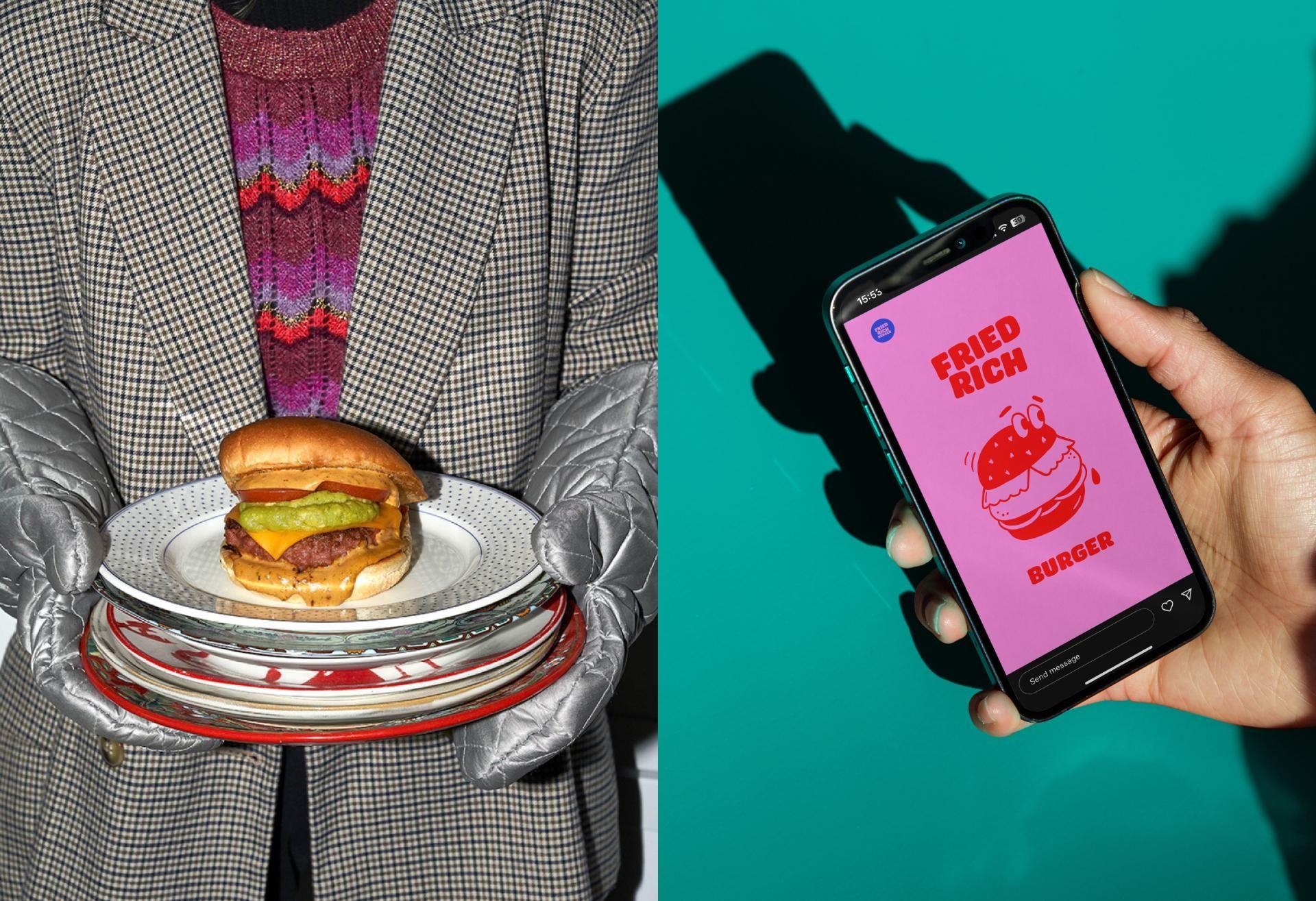 Концепция фирменного стиля была основана на названии самого места. Мы представляли Фридриха слегка эксцентричным человеком, который обожал вкусно поесть и питал особую страсть к бургерам. Очевидно, в его время такого понятия в принципе не существовало, но мы решили интерпретировать это по-своему – Burgerliebe ist eine Liebe zum Essen in Schichten (Любовь к бургерам – это многослойная любовь). Эта идея лежит в основе всего фирменного стиля: от логотипа до причудливых авторских иллюстраций.