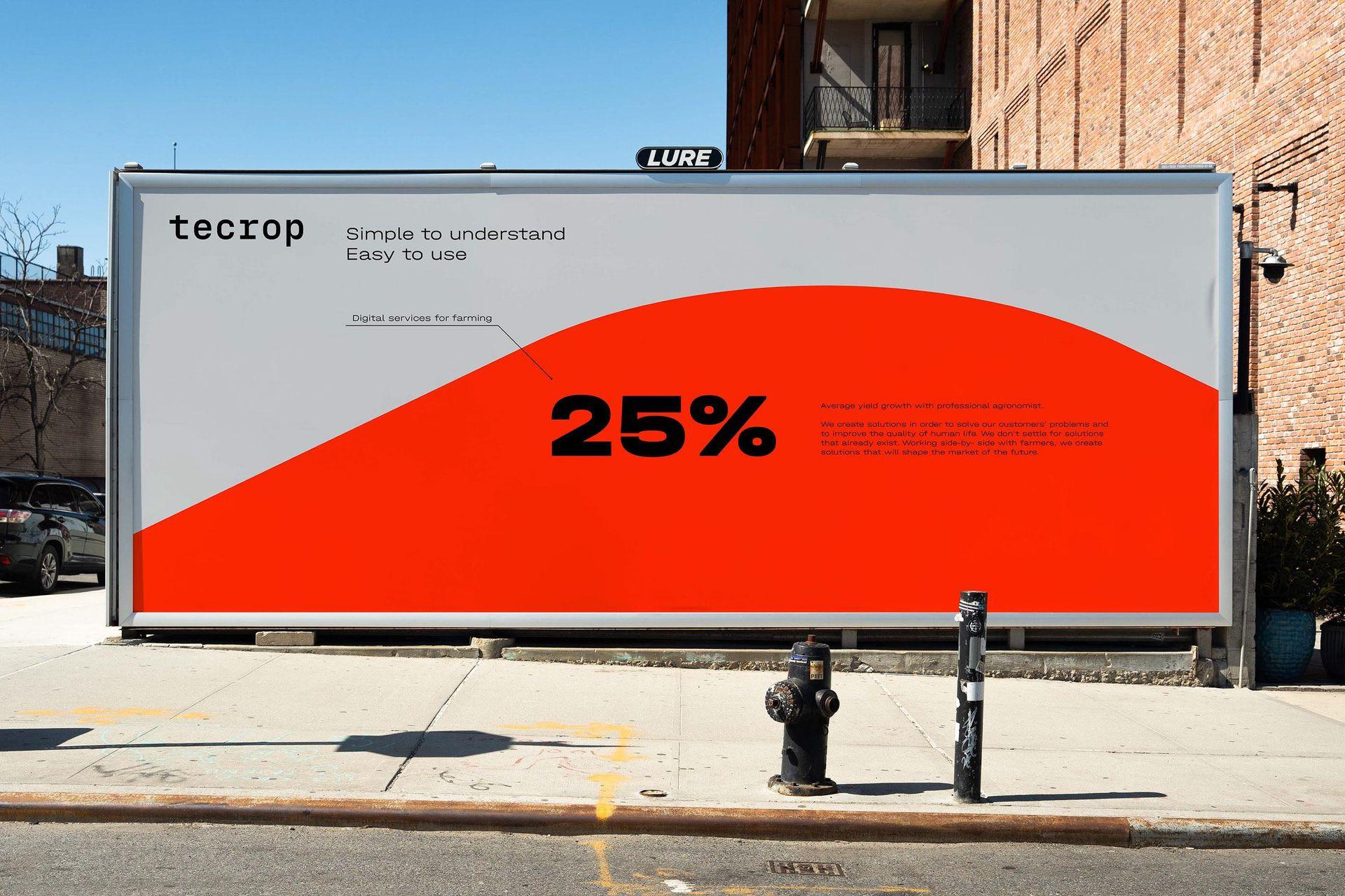 Чтобы создать бренд, который относится к традиционному сельскому хозяйству, и предлагает инновационные технологии закрывая потребности фермеров, мы переосмыслили привычный образ "зеленого" фермерства и создали высокотехнологичную версию устойчивой агротек компании будущего.