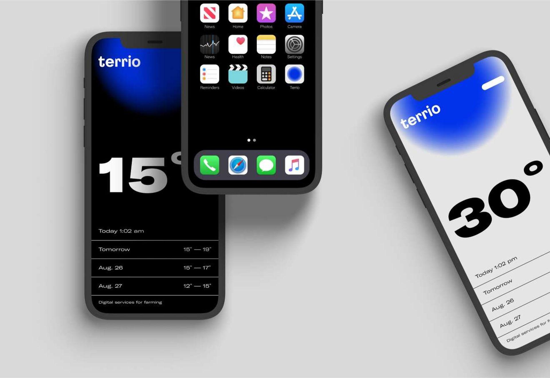 Terrio предоставляет фермерам инновационные цифровые технологии, поэтому основными точками контакта с целевой аудиторией бренда являются сайт и мобильное приложение. Мы создали удобный дизайн для диджитал носителей, который отражает позиционирование бренда и показывает научные данные в удобном для понимания и использования виде.