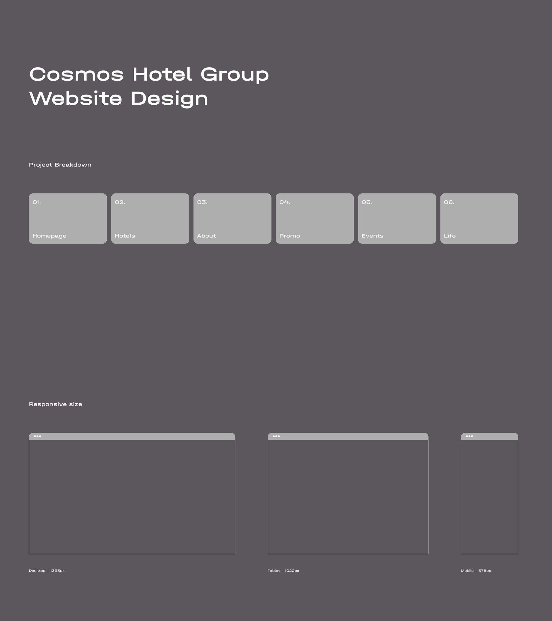 Cosmos Hotel Group управляет более 20 отелями в 15 городах России и входит в число ведущих гостиничных сетей страны, постоянно наращивая свои активы, как за счет строительства новых объектов, так и за счет управления отелями других брендов. В 2022 году компания приняла новую бизнес-стратегию, поэтому необходимо было пересмотреть позиционирование бренда, его бренд архитектуру, создать коммуникационную стратегию и имплементировать бренд, создав корпоративный сайт для Группы и обновив сайты отелей.