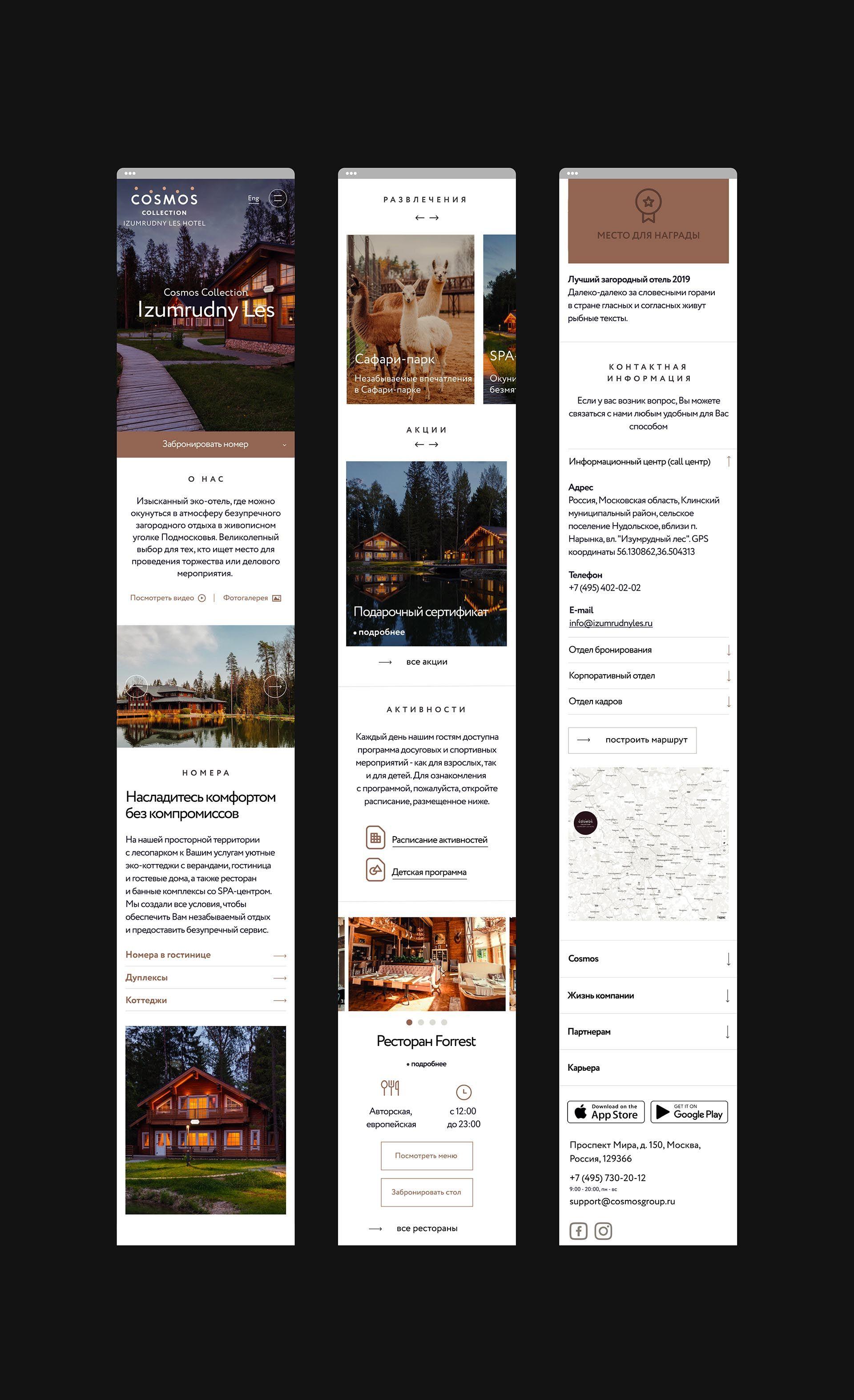 Мы обновили корпоративный сайт Cosmos Hotel Group и 17 отдельных сайтов отелей с системой бронирования, программой лояльности и личным кабинетом. Мы полностью переработали структуру и навигацию сайта с учетом всех потребностей как b2c, так и b2b целевых аудиторий бренда, переработали весь контент, а также провели первичную оптимизацию сайта. Новый дизайн – минималистичный, но броский и интерактивный, и в то же время достаточно информативный, чтобы не перегружать пользователей лишней информацией.