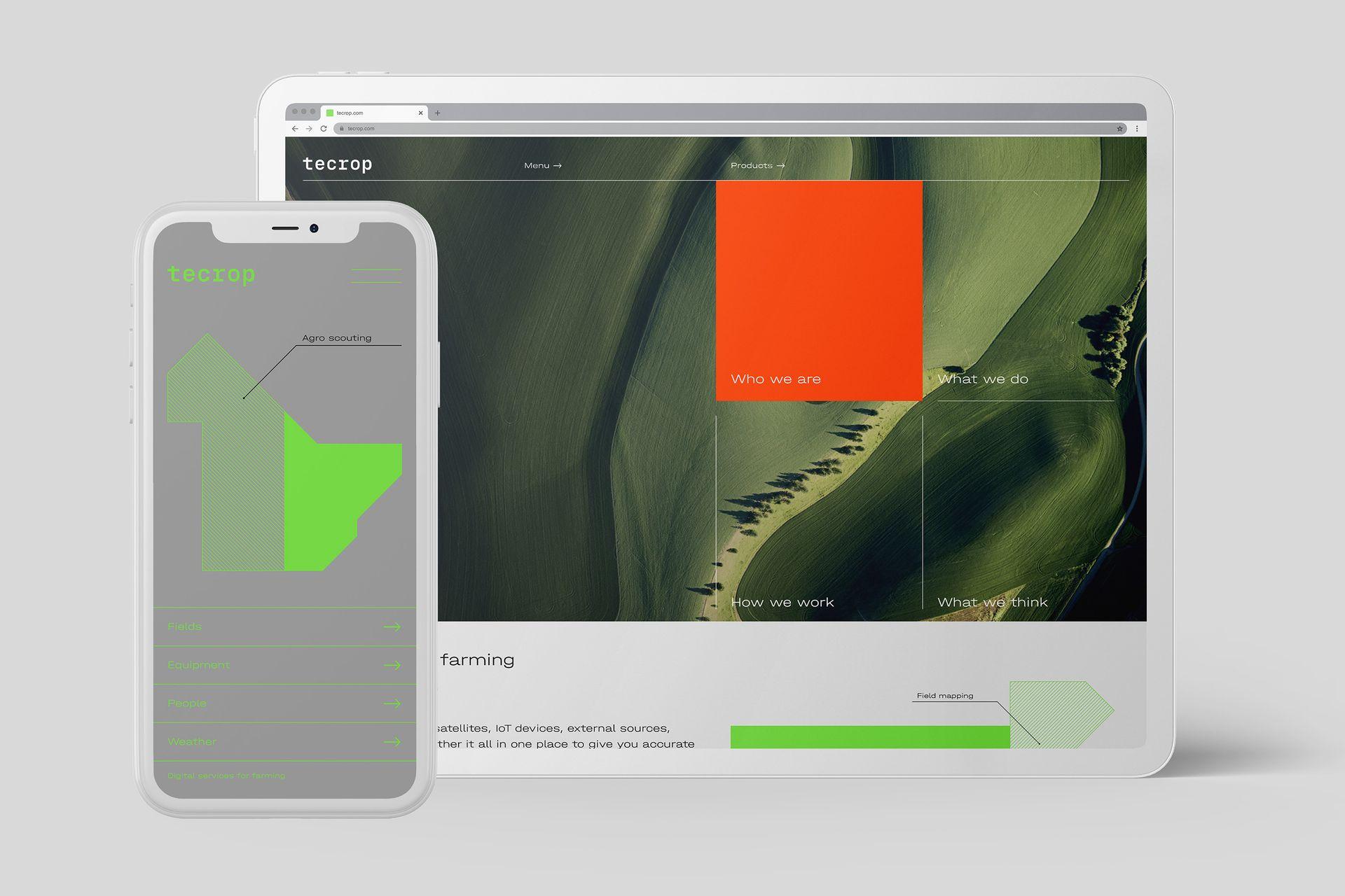 Tecrop предлагает фермерам инновационные цифровые технологии, поэтому основными точками контакта с целевой аудиторией бренда являются веб-сайт и мобильное приложение. Мы создали удобный дизайн для цифровых материалов, который отражает позиционирование бренда и представляет базу данных таким образом, чтобы их было легко понять и использовать.