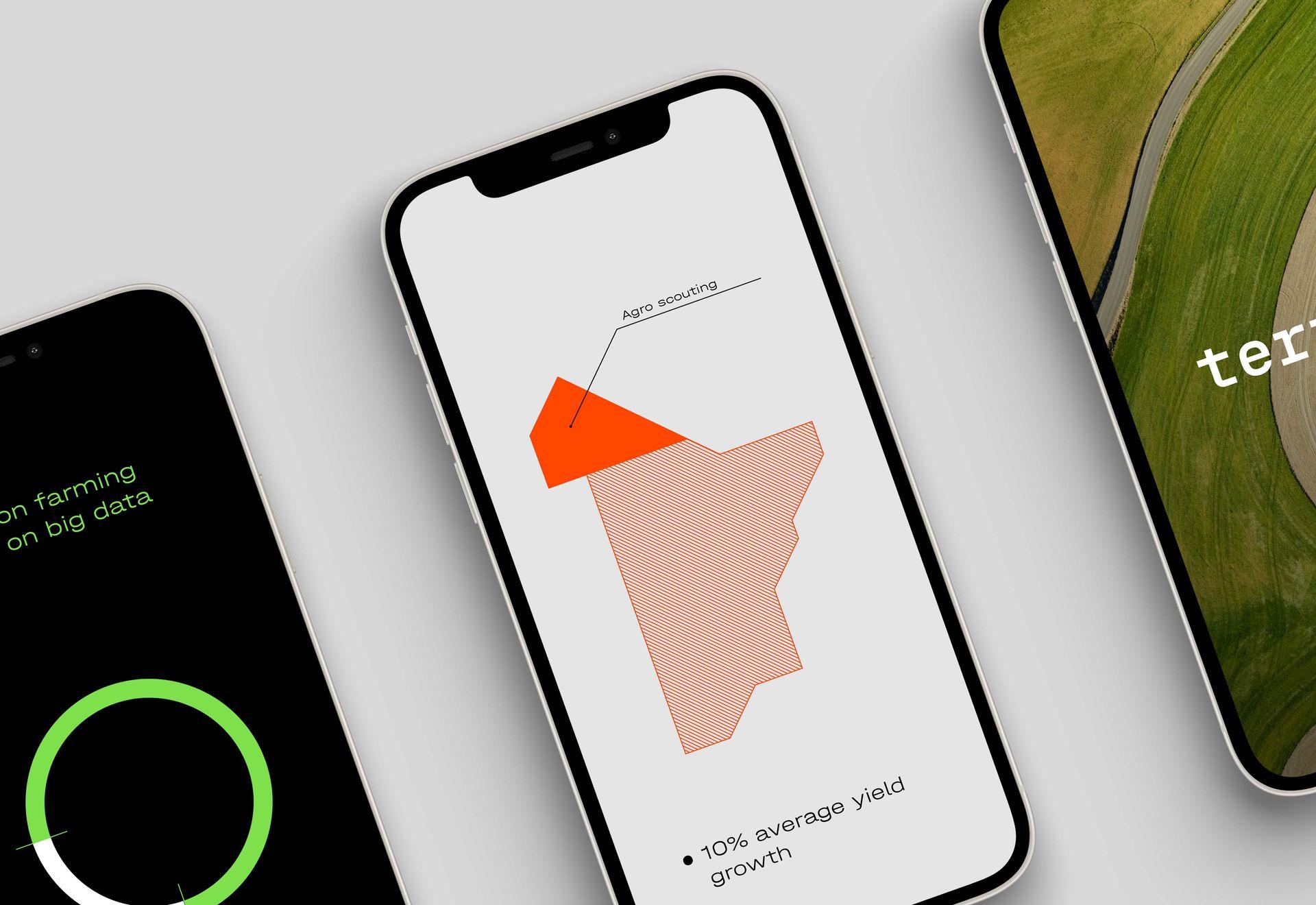 В основе фирменного стиля лежат географические формы и очертания полей, а также то, как они изображены на бумажных и цифровых картах. Уникальный ландшафт, границы которого сформированы природой и человеком, является прямой аналогией самой концепции бренда, который существует на пересечении технологий и сельского хозяйства.