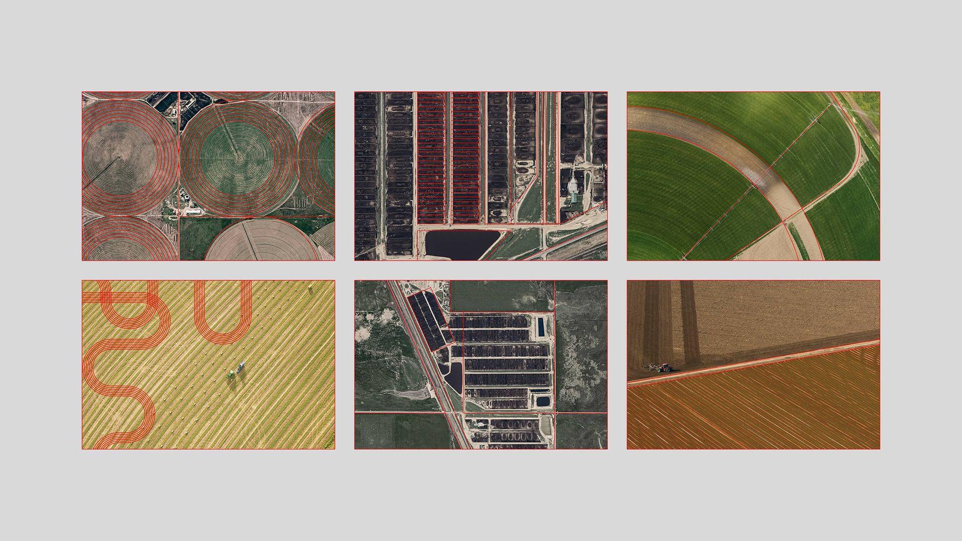 Вдохновившись формами полей, созданных природой и человеком, мы создали элементы айдентики в форме схематичных изображений карт. Получившиеся фигуры можно использовать как в качестве отдельных элементов, так и в дополнение к инфографике. Формы могут быть заполнены сплошным цветом, либо различными видами штриховки. Они также могут служить рамками для текстового контента или изображений.
