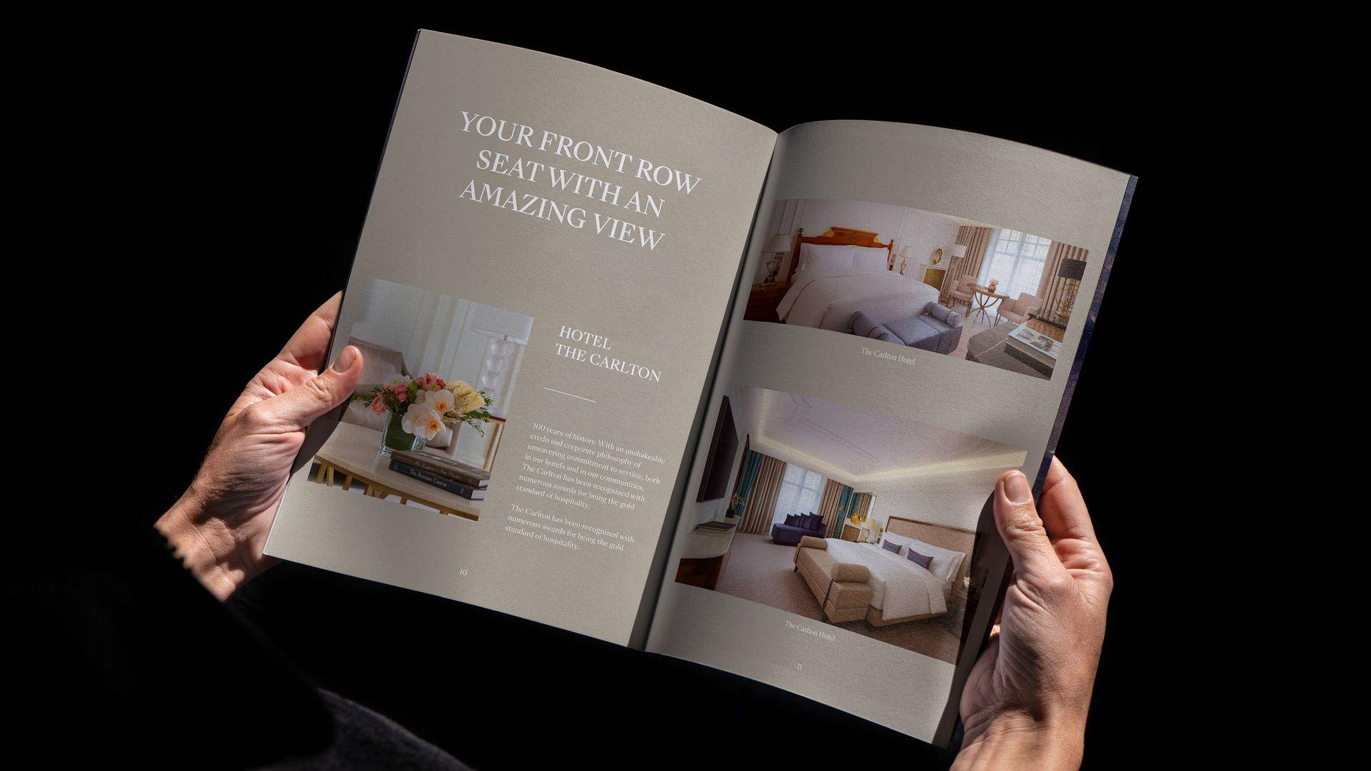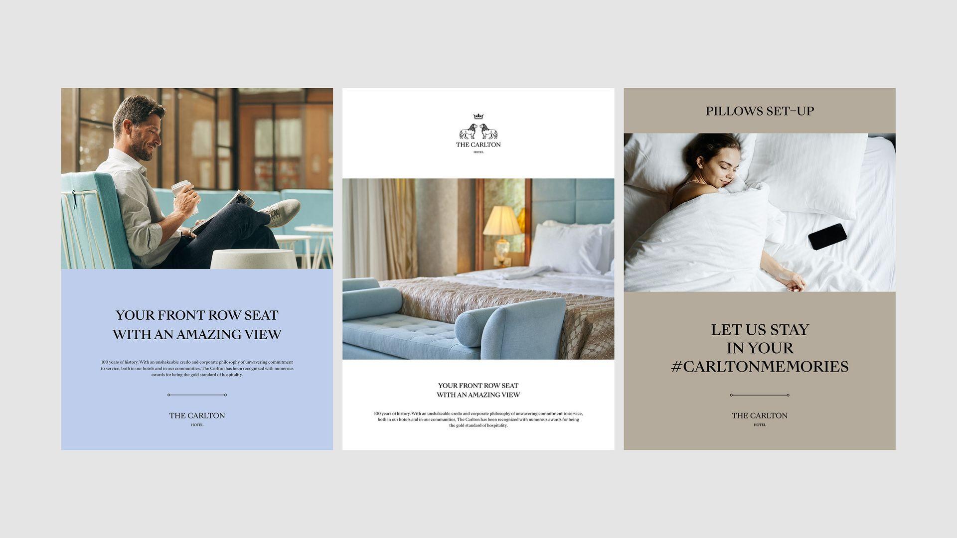 Мы создали для The Carlton Hotel новый фирменный стиль. За основу дизайн концепции были взяты обновленные интерьеры общих зон отеля, а также уникальный фасад самого здания.
