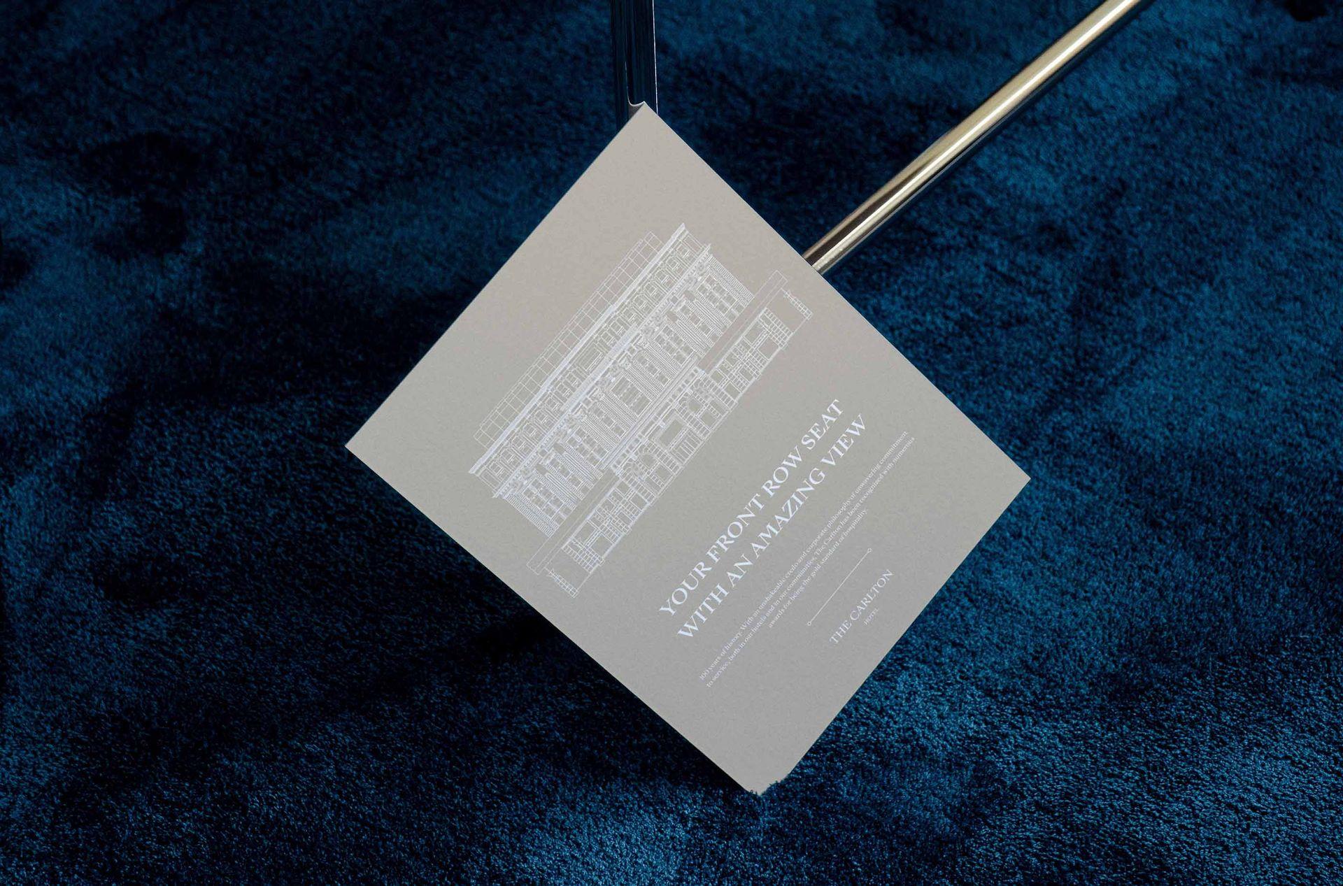 The Carlton – это синоним тихой роскоши и высочайшего класса. Он объединяет людей из разных миров, предоставляя им лучший сервис и уникальный уровень комфорта. Однако одной из главных составляющих отеля являются не только люди, но и само здание. Вдохновленные эклектичным стилем отеля, мы создали элемент айдентики, основанный на прямых тонких линиях, которые имитируют архитектурный чертеж.