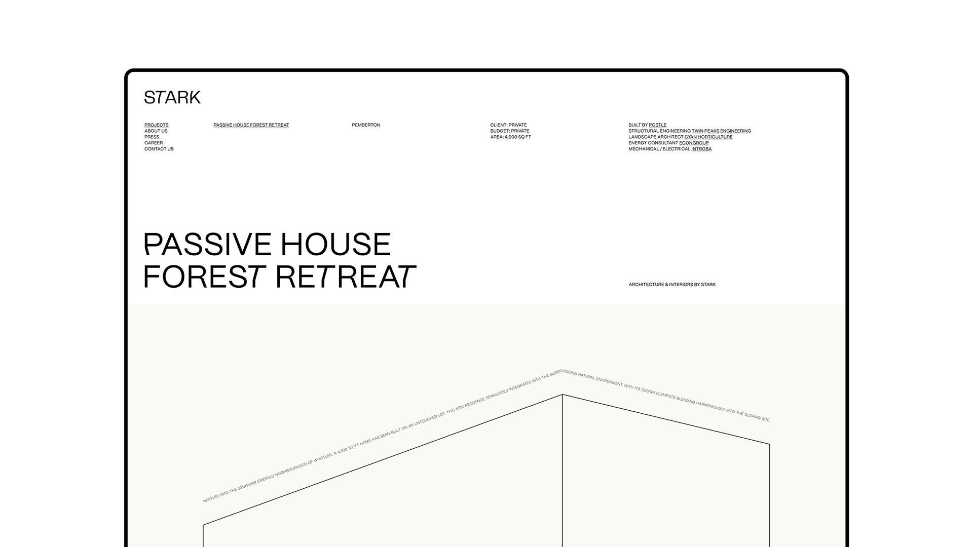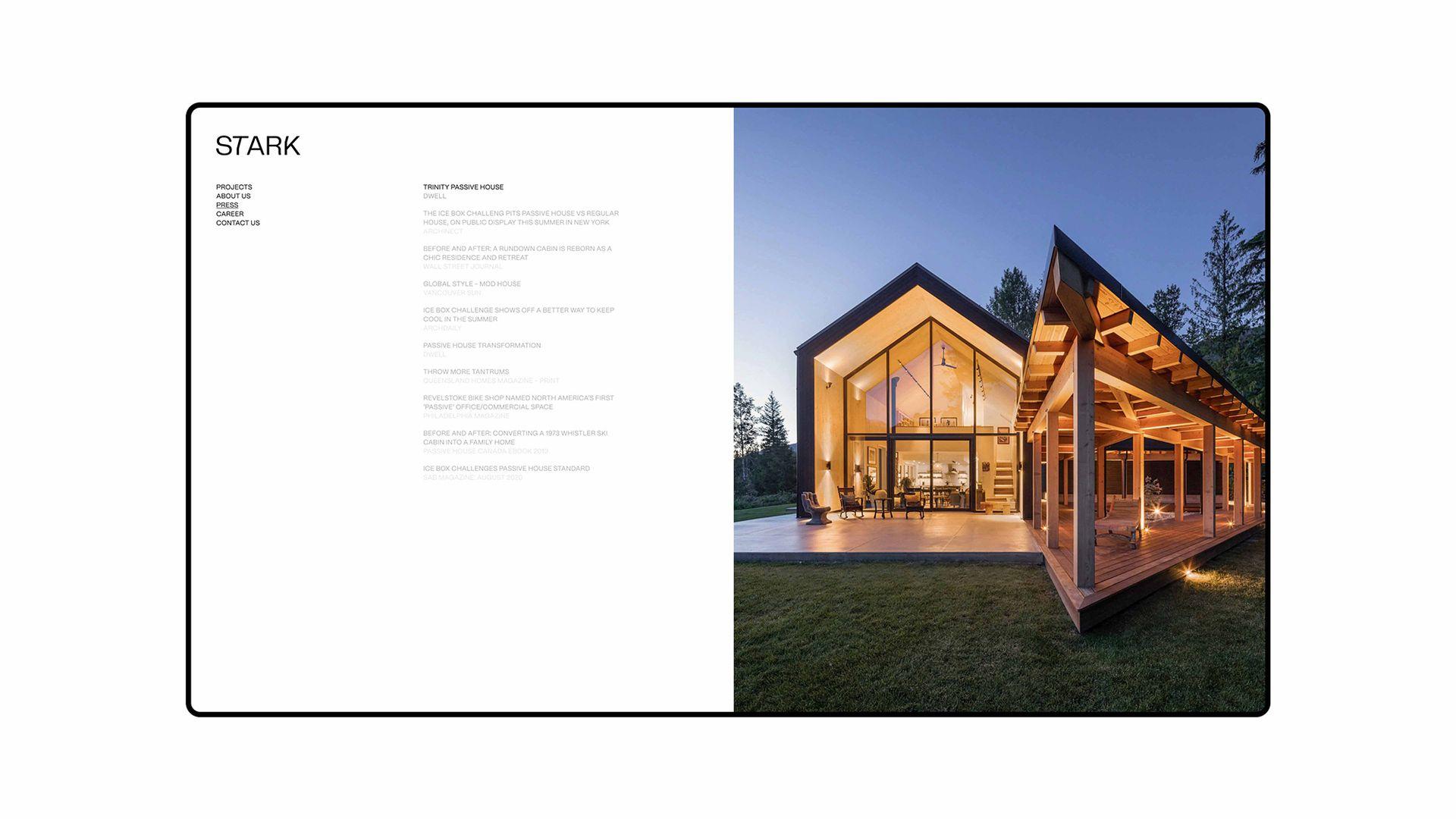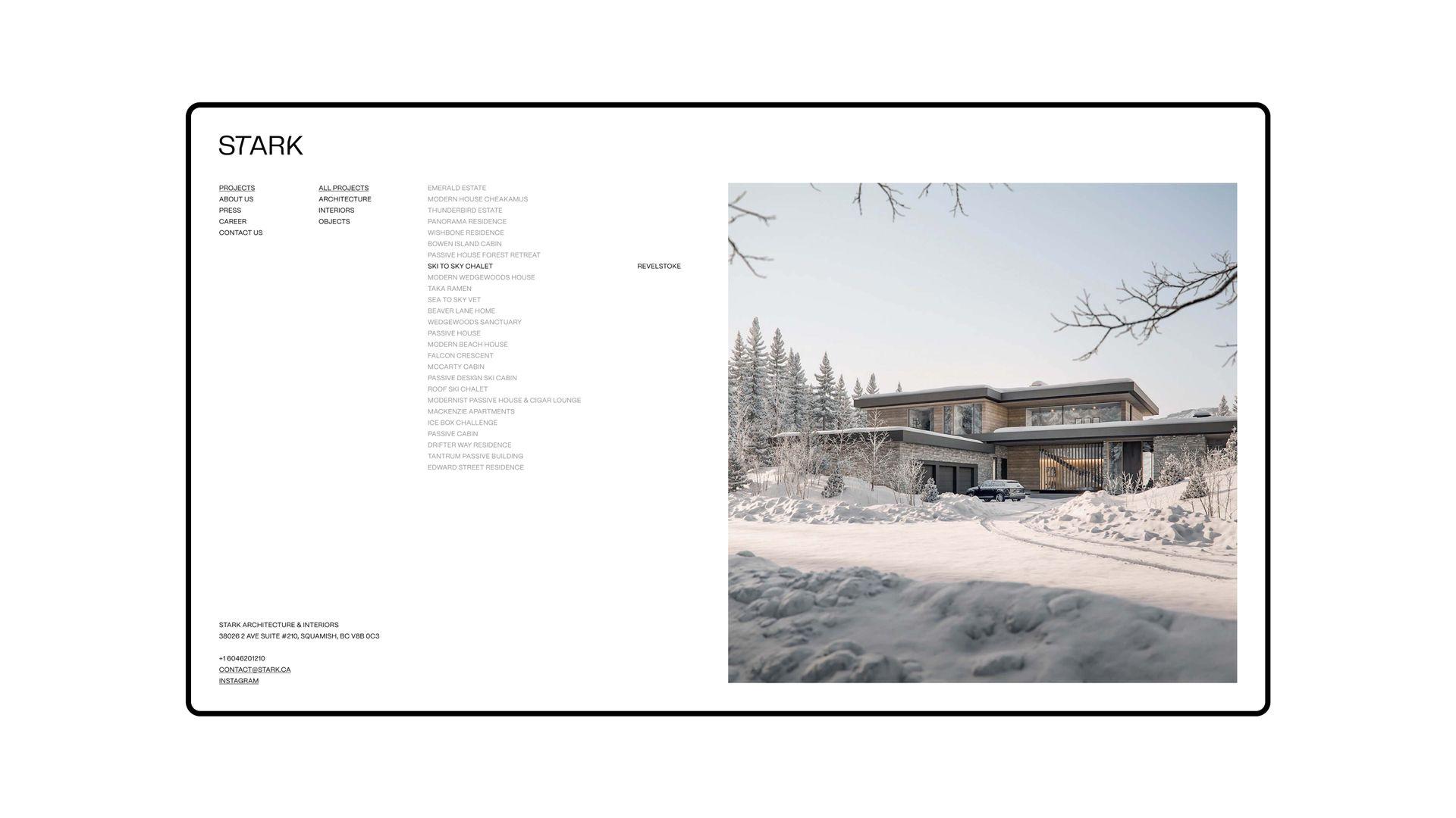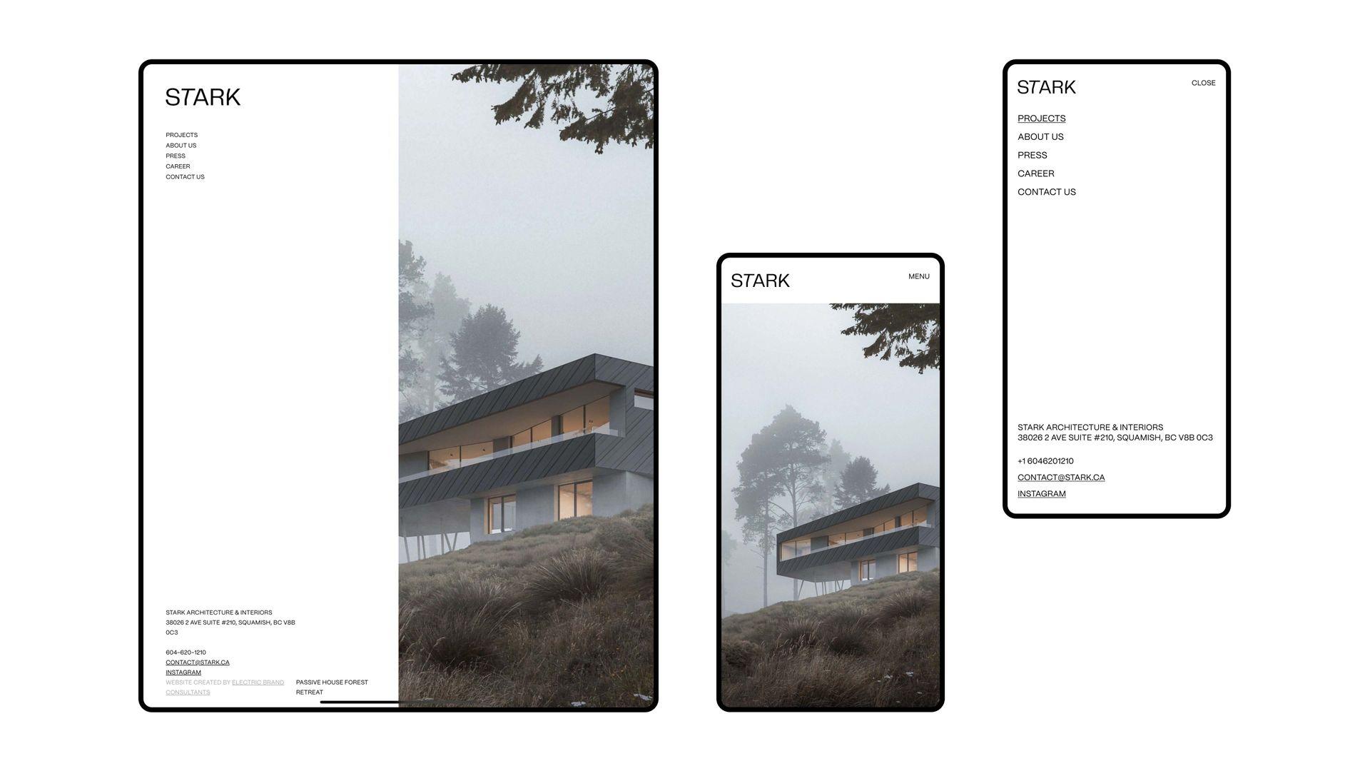 STARK, архитектурная и дизайн-студия, базирующаяся в живописном городе Сквамиш, Канада, обратилась к нам за обновлением их текущего сайта. В дополнение к новой айдентике в качестве первого этапа внедрения бренда мы разработали сайт. Выполненный в соответствии с эстетикой минимализма, он отражает основные ценности бренда, методологию, портфолио и, прежде всего, знакомит нас с командой STARK.